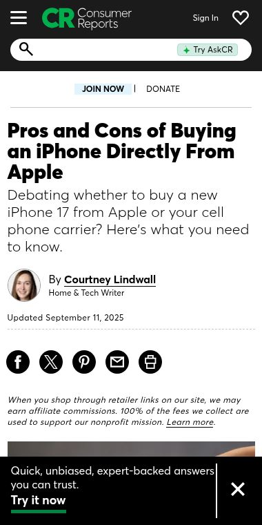 This Consumer Reports page is a straightforward, no-nonsense guide that breaks down the good and the bad of purchasing your iPhone directly from the source. It feels like getting advice from a knowledgeable friend who wants to help you make a smart choice.