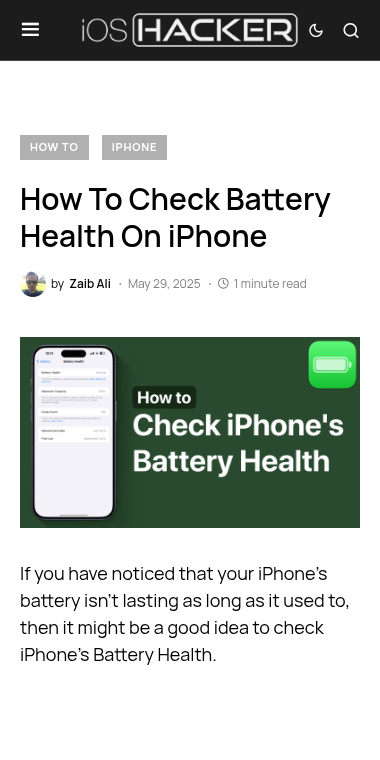 IF YOU HAVE NOTICED THAT YOUR IPHONE'S BATTERY ISN'T LASTING AS LONG AS IT USED TO, THEN IT MIGHT BE A GOOD IDEA TO CHECK IPHONE'S BATTERY HEALTH. for Checking iPhone battery health at ioshacker.com