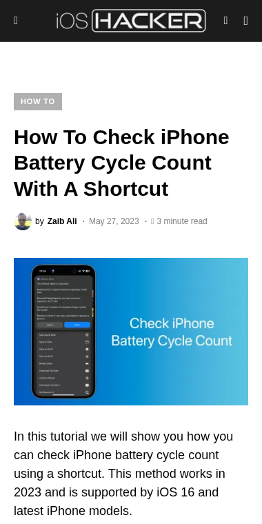 IN THIS TUTORIAL WE WILL SHOW YOU HOW YOU CAN CHECK IPHONE BATTERY CYCLE COUNT USING A SHORTCUT. THIS METHOD WORKS IN 2023 AND IS SUPPORTED BY IOS 16 AND LATEST IPHONE MODELS. for Checking iPhone battery health at ioshacker.com