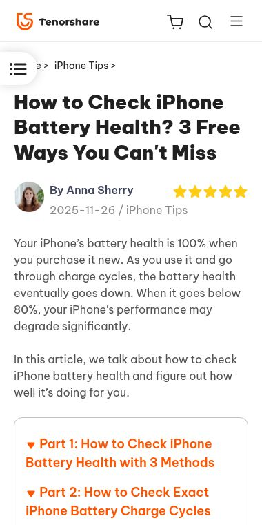 MANY IPHONE USERS FIND IT HARD TO FIGURE OUT WHAT THEIR BATTERY HEALTH IS. THIS ARTICLE TALKS ABOUT THE TOP 3 WAYS HOW TO CHECK IPHONE BATTERY HEALTH. for Checking iPhone battery health at tenorshare.com