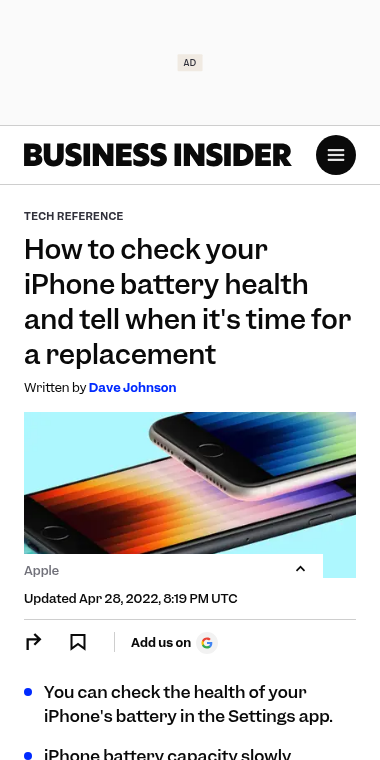 h1: How to check your iPhone battery health and tell when it's time for a replacement h2: ,What does iPhone battery health mean?,Read next nav_tags: content: