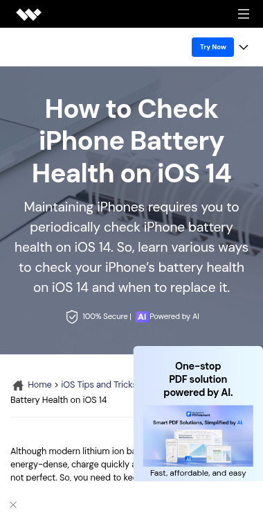 h2: How to Check Your iPhone’s Battery Health on iOS 14,When to Replace an iPhone Battery on iOS 14,Best iPhone/iPad PDF Editor for iOS 14 – PDFelement for iOS,One-stop