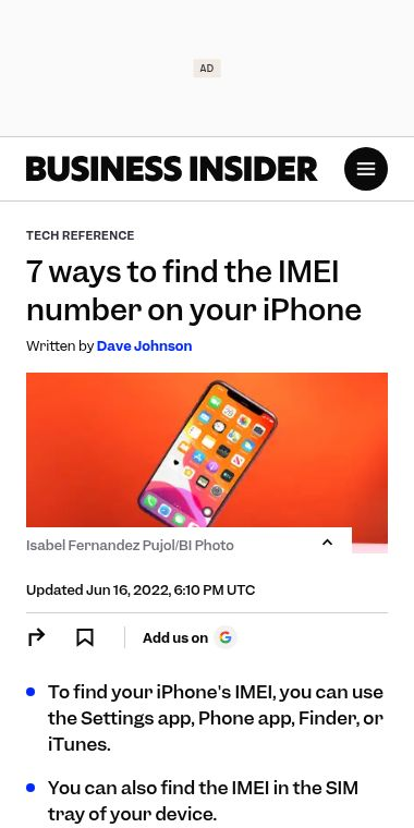 This Business Insider page is a straightforward, no-fuss resource that cuts right to the chase. It's designed to help you quickly find a crucial piece of information about your iPhone without wading through tons of technical jargon.