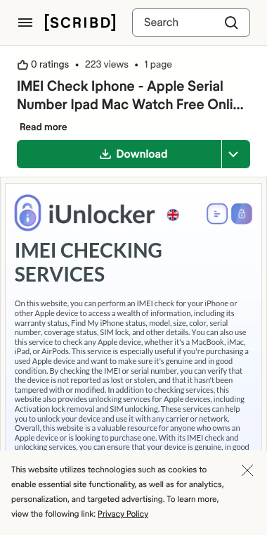 IMEI CHECK IPHONE - APPLE SERIAL NUMBER IPAD MAC WATCH FREE ONLINE CHECKER - FREE DOWNLOAD AS PDF FILE (.PDF), TEXT FILE (.TXT) OR READ ONLINE FOR FREE. for Checking iPhone IMEI at scribd.com