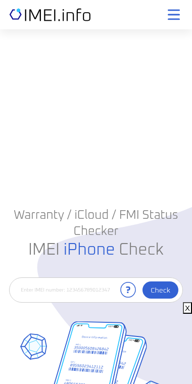 FREE IPHONE IMEI CHECKER. CHECK IPHONE STATUS, WARRANTY, ICLOUD, FMI AND OTHER INFO ABOUT YOUR APPLE DEVICE. for Checking iPhone IMEI at imei.info