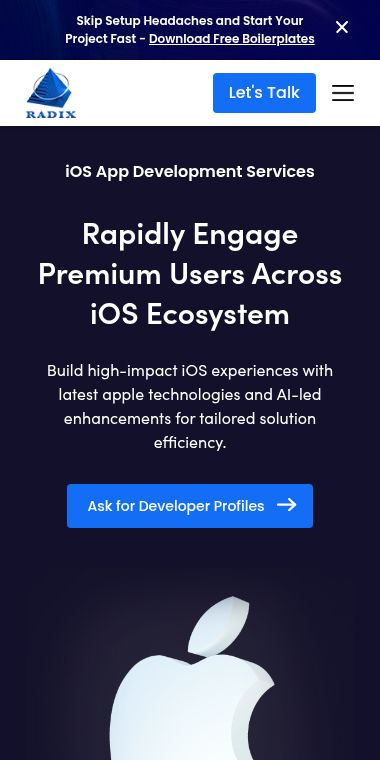 This is the website for Radixweb, a company that builds custom software and apps. They specialize in creating iOS applications for businesses, from startups to big enterprises. The site has a clean, modern look that makes it easy to find what you need.