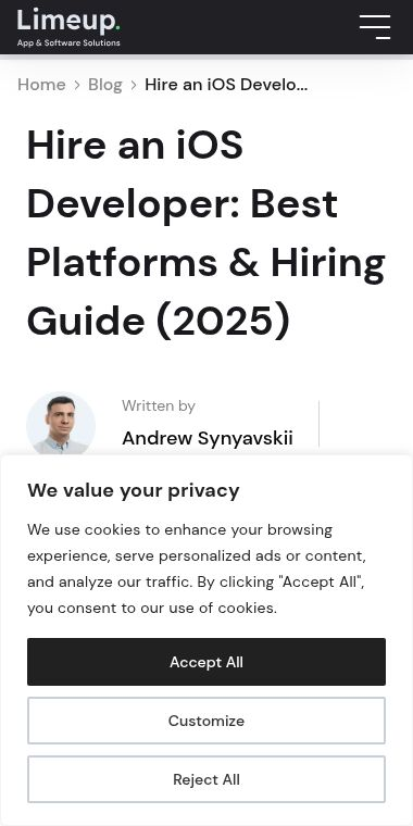This is a super handy website from a software development agency, Limeup. It’s basically a deep-dive blog post all about the process of finding and hiring iOS developers. The whole vibe is practical and informative, like getting advice from an expert friend in the industry.