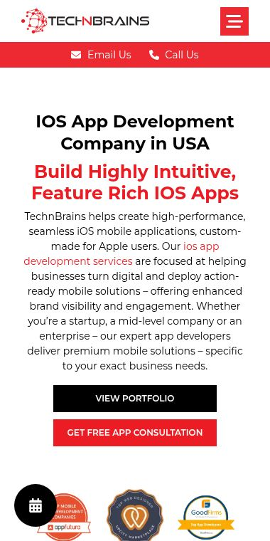 This is the website for TechnBrains, a company that specializes in building custom iOS apps. They present themselves as a team of expert developers ready to bring your mobile app ideas to life, focusing on creating sleek and user-friendly applications for iPhones and iPads.