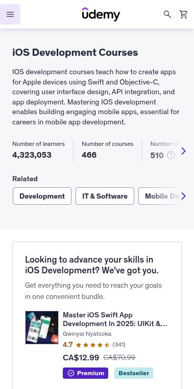This Udemy page is a massive hub for anyone looking to get into iPhone and iPad app creation. It’s super easy to browse and is packed with courses for all skill levels, from total beginners to seasoned pros.