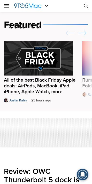 h2: All of the best Black Friday Apple deals: AirPods, MacBook, iPad, iPhone, Apple Watch, more,Featured,Latest,The EU may be about to increase regulation on Apple Maps and the company’s ads business,Apple kicks off its official 2025 Black Friday Shopping Event,Why is the Apple Store down in the US?,Poll,More from 9to5Google,Report: iPhone ‘single-handedly’ drove phone sales growth during China’s Singles’ Day event,MacBook Air, Mac mini, and more hit new lows for Black Friday: from $479,Weird Apple Podcasts behavior could enable cross-site hacking attempts,More from 9to5Toys,Thanksgiving Deals: 24GB M4 Mac mini all-time low $150 off, Apple Pencil $49, Apple Watch from $120, much more,Black Friday savings hit official iPhone 17 cases, Apple Watch bands, AirTag, and more,EU backs down on CSAM scanning but Apple isn’t off the hook yet,More from Space Explored,Here are the best gifts for a perfect Mac setup: Gift guide,Rumor Replay: iOS 27, iPhone Fold price, 2026 launches,Watch Apple’s new musical holiday ad ‘A Critter Carol’, featuring iPhone 17 Pro,More from DroneDJ,Review: SwitchBot Wallet Finder is an incredibly useful accessory to track your wallet with iPhone Find My [60% off for Black Friday],All of the best Black Friday Apple deals: AirPods, MacBook, iPad, iPhone, Apple Watch, more,PSA: OpenAI is notifying all users of a data breach, but you probably aren’t affected,More from Connect The Watts,Plex paywall for remote streaming now being enforced,Chinese brands watched the iPhone Air flop and canceled their own plans – report,Hands-on with Belkin’s latest MagSafe charging stands, power banks, and more,More from Electrek,9to5Mac Daily: November 26, 2025 – macOS Tahoe fixes, Apple News changes,Opera’s AI browser gets ‘1-minute Deep Research’ mode, Gemini 3 Pro integration, more,Apple challenges potential $38B antitrust fine in India,More from 9to5Google,Becca Farsace had Apple Vision Pro replace her other screens for a month,M5 MacBook Pro vs M4 MacBook Air: Which should you buy this holiday season?,Apple again sued over alleged conflict mineral issues in Congo and Rwanda,More from 9to5Toys