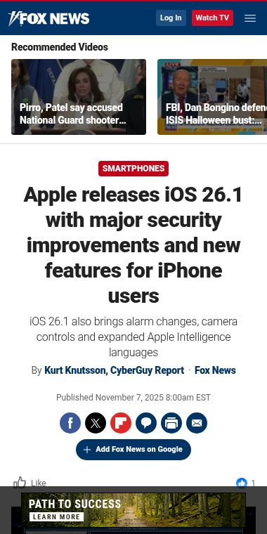 IOS 26.1 UPDATE BOOSTS IPHONE SECURITY AND PERFORMANCE IMPROVEMENTS | FOX NEWS