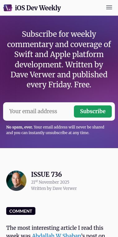 iOS Dev Weekly is a fantastic, hand-picked newsletter for anyone interested in Apple platform development. It’s like having a friend who sifts through all the noise to bring you the best links, news, and tools every week.