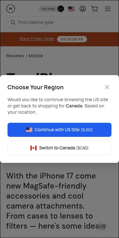 h2: With the iPhone 17 come new MagSafe-friendly accessories and cool camera attachments. From cases to lenses to filters — here's some ideas.,1. Moment Camera Cases,Camera Case for iPhone 17 - iPhone 17 / Black,2. QuickLock Filters,VND (2-7 Stop) QuickLock Filter - iPhone 15 Pro/Pro Max | iPhone 16 Pro/Pro Max,3. MagSafe Mounts,Tripod Mount - for MagSafe - Pro Tripod Mount - Landscape & Portrait,4. Moment Everything Sling,Everything Sling 2L - Olive,5. Peak Design Mobile Tripod,6. Mobile Lenses,Fisheye 14mm Mobile Lens - M-Series,Related Articles:,💌 There's More!,Creativity Unlocked