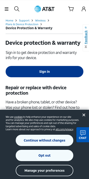 AT&T - Device Protection and Warranty Information. Fix or replace a lost, stolen, or broken device