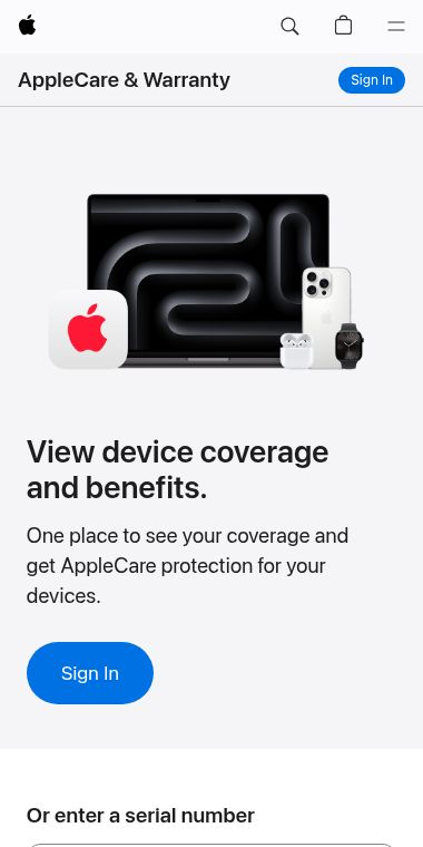 On this page, you can enter your device's serial number to find out its valid purchase date, technical support eligibility, and repair coverage under Apple's standard one-year warranty or an active AppleCare plan.