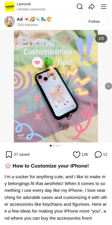 DISCOVER UNIQUE WAYS TO CUSTOMIZE YOUR IPHONE WITH ADORABLE CASES, KEYCHAINS, AND FIGURINES. THIS GUIDE WILL SHOW YOU HOW TO MAKE YOUR IPHONE TRULY YOUR OWN AND WHERE TO FIND THE BEST ACCESSORIES ONLINE. GET READY TO EXPRESS YOUR STYLE! for iPhone entertainment and customization at lemon8-app.com
