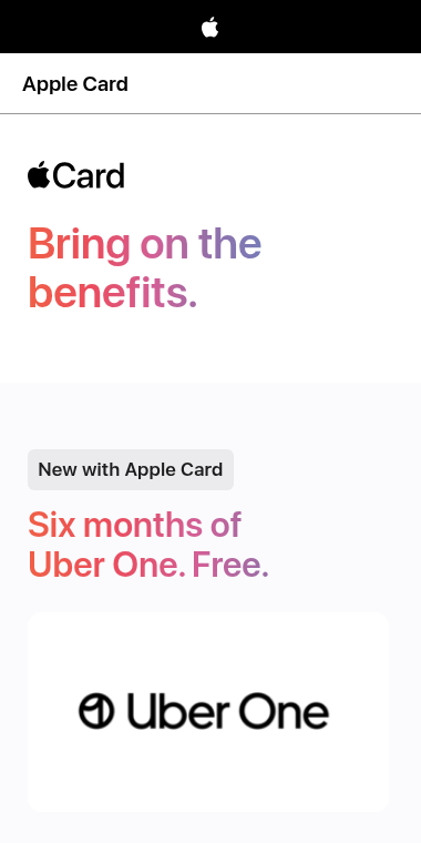 h2: Six months of,Daily Cash.,Extra perks offered,Grow your Daily Cash,Healthy finances. Family style.,Pay for new Apple products ⁠over time, interest-free.,Accepted globally,⁠
