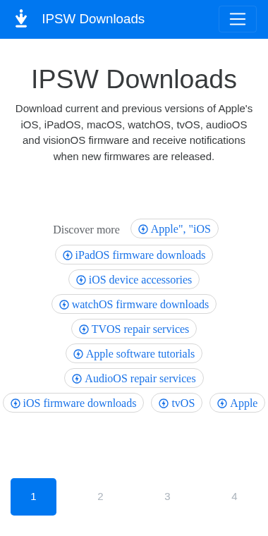 Download iOS Firmware for iPhone, iPad, iPod Touch, Apple Watch, Apple TV, HomePod and Vision Pro / IPSW Downloads