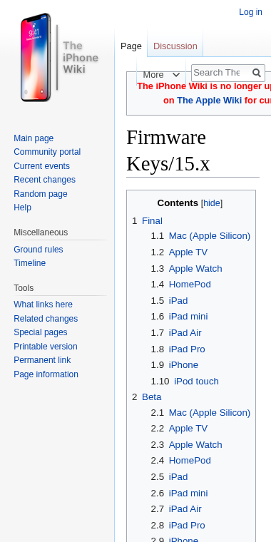 FIRMWARE KEYS/15.X - THE IPHONE WIKI