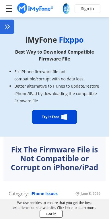This iMyFone page is a helpful guide for anyone who has hit a snag while trying to update or restore their iPhone. It tackles that specific, frustrating error message saying your firmware file isn’t compatible.