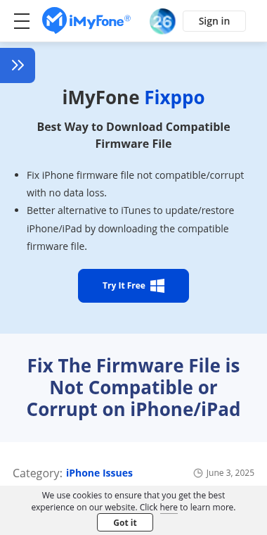 This iMyFone page is a helpful spot if you're stuck trying to update or restore your iPhone and keep getting a nasty "firmware not compatible" error. It breaks down a confusing tech problem into simple, fixable steps.