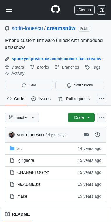 This GitHub page is a total blast from the past! It's the home for creamsn0w, an old-school jailbreak tool for iPhones and iPods running iOS 4.