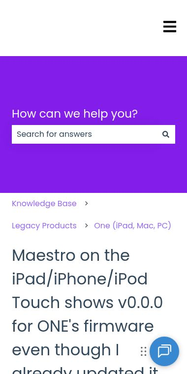 MAESTRO ON THE IPAD/IPHONE/IPOD TOUCH SHOWS V0.0.0 FOR ONE'S FIRMWARE EVEN THOUGH I ALREADY UPDATED IT for iPhone firmware at knowledge.apogeedigital.com