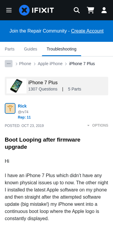 SOLVED: BOOT LOOPING AFTER FIRMWARE UPGRADE - IPHONE 7 PLUS - IFIXIT