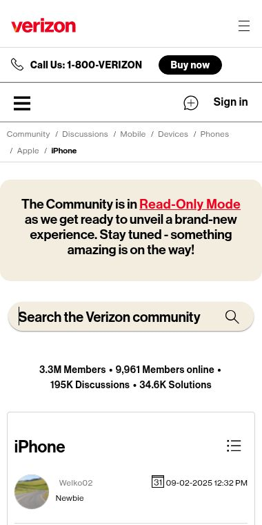 This is a community support page on Verizon’s official site where people can chat about all things iPhone. It’s a public forum where Verizon customers and experts help each other with questions, problems, and tips.