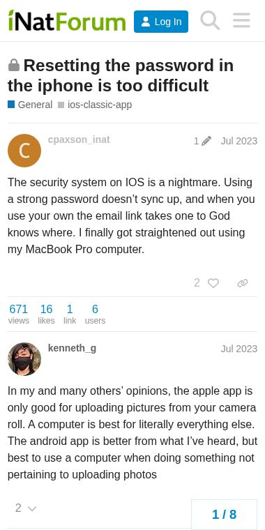 RESETTING THE PASSWORD IN THE IPHONE IS TOO DIFFICULT - GENERAL - INATURALIST COMMUNITY FORUM