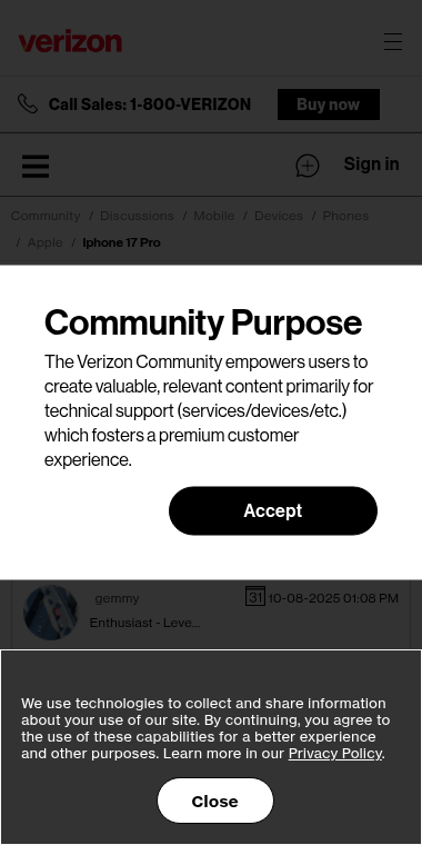 COMMUNITY FORUMS - IPHONE 17 PRO - VERIZON COMMUNITY