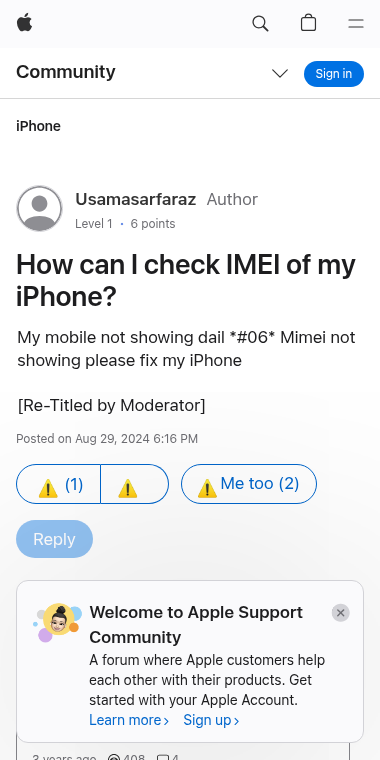 AN UNEXPECTED ERROR HAS OCCURRED. for Checking iPhone IMEI at discussions.apple.com