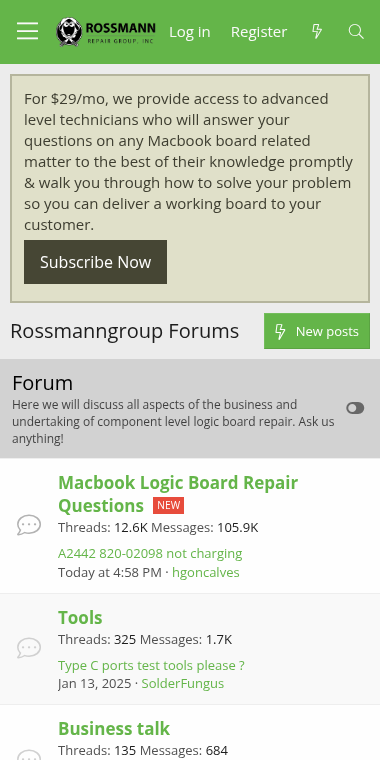 This is the official forum for Louis Rossmann's group, a bustling online spot for anyone passionate about the right to repair. It's where technicians, hobbyists, and activists gather to share knowledge and fight against planned obsolescence.