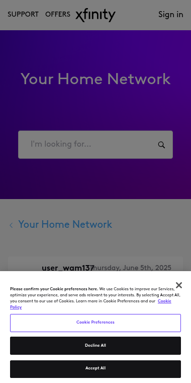 This is a support page on Xfinity's community forum where users help each other with internet issues. It's a casual spot for folks to share problems and solutions.