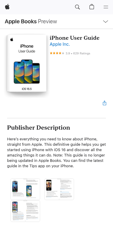 This is the official user guide from Apple, a free online book that's your go-to resource for everything your iPhone can do. It's like having a friendly expert on call to answer all your questions.