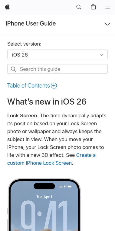 IOS IS NOW FASTER AND MORE RESPONSIVE ON ALL SUPPORTED DEVICES. LEARN ABOUT THE NEW FEATURES IN IOS 26. for iPhone guides at support.apple.com