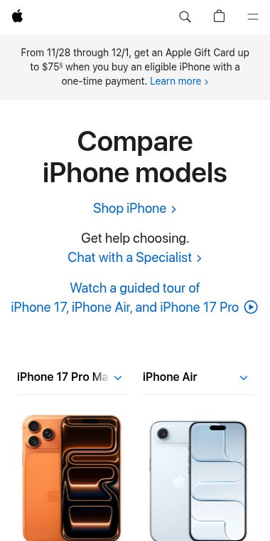 This is Apple's handy webpage for anyone trying to decide which new iPhone is right for them. It's clean, visual, and puts all the key specs side-by-side so you can easily spot the differences between models.