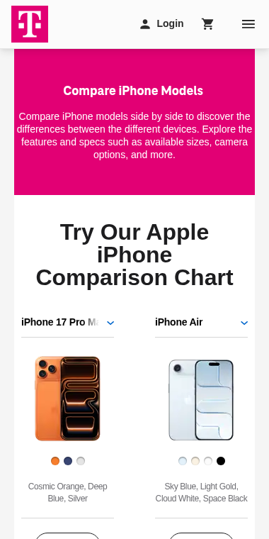 This is T-Mobile's handy one-stop shop for anyone trying to pick their next iPhone. It cuts through the clutter so you can easily see your options.