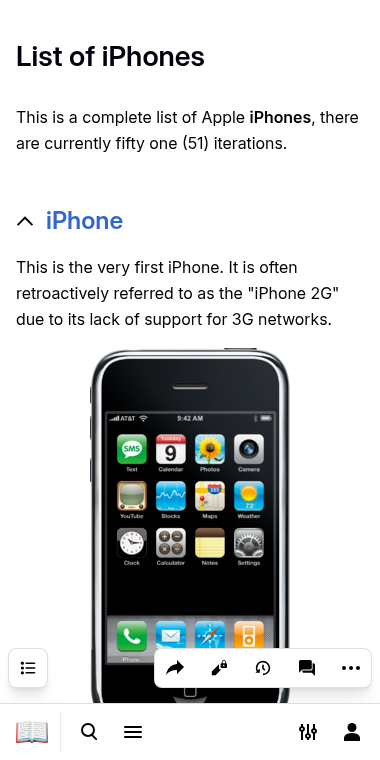 This specific page is a complete, chronological list of every iPhone ever released. You can quickly see the model names, release years, key features, and even the iOS versions they started and ended on, all in one easy-to-scan spot.