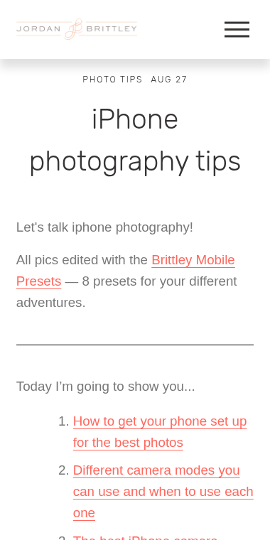 IPHONE PHOTOGRAPHY TIPS — JORDAN BRITTLEY