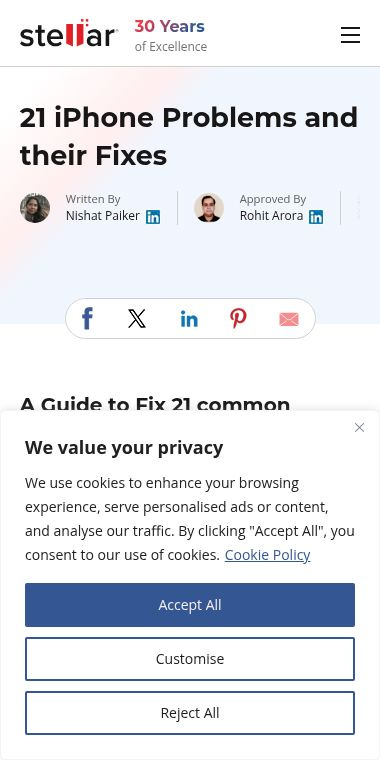 FIX ALL PROBLEMS OR ISSUES USERS OFTEN EXPERIENCE RELATED TO THEIR IPHONES LIKE BLACK SCREEN, BATTERY LIFE PROBLEMS, IPHONE STUCK ON APPLE LOGO, CAMERA NOT WORKING, AND SO ON. for iPhone problem solutions at stellarinfo.com
