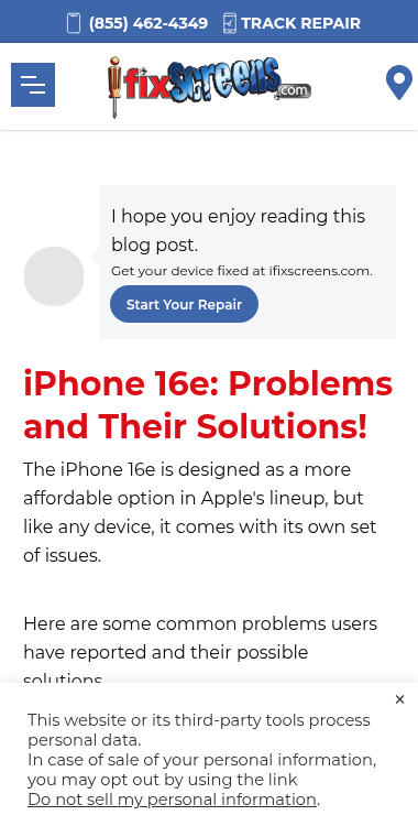 FACING ISSUES WITH YOUR IPHONE 16E? FROM BLUETOOTH PROBLEMS TO PERFORMANCE GLITCHES, DISCOVER THE BEST FIXES TO KEEP YOUR DEVICE RUNNING SMOOTHLY. for iPhone problem solutions at ifixscreens.com