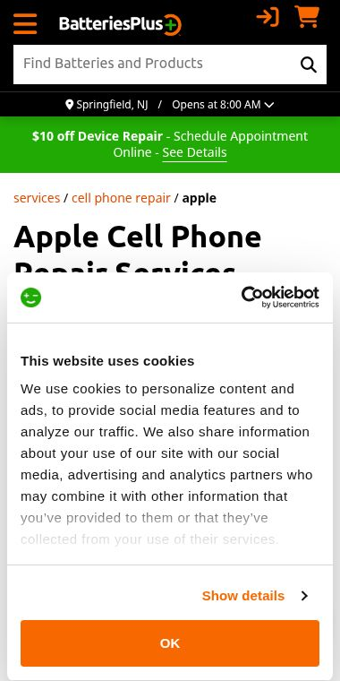 Here, you can specifically find details on their Apple repair services, like screen and battery replacement, see if your model is covered, and most importantly, book a repair appointment at a location near you.