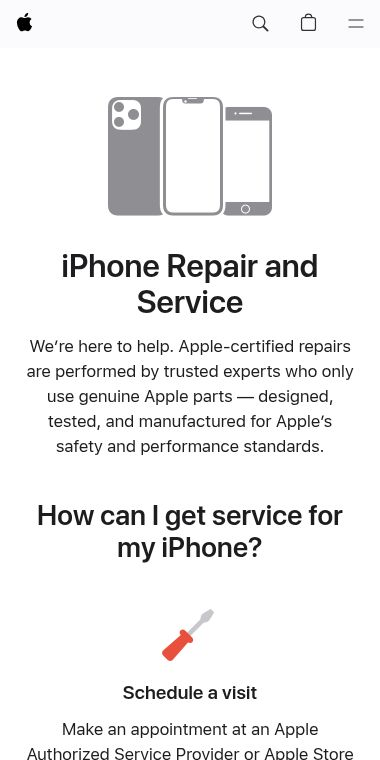 This is Apple's official support page for iPhone repairs. It's a clean, straightforward site designed to get you the help you need without any fuss, whether your phone is broken or just needs a new battery.