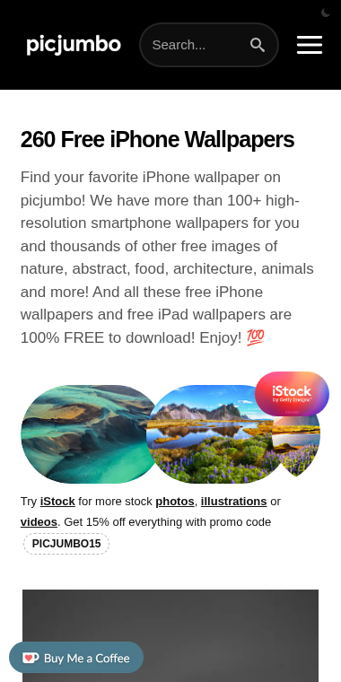 h1: 260 Free iPhone Wallpapers h2: Find your favorite iPhone wallpaper on picjumbo! We have more than 100+ high-resolution smartphone wallpapers for you and thousands of other free images of nature, abstract, food, architecture, animals and more! And all these free iPhone wallpapers and free iPad wallpapers are 100% FREE to download! Enjoy! 💯,Get all new photos in your email!,Get more from picjumbo,Resources,picjumbo,Popular categories nav_tags: content: