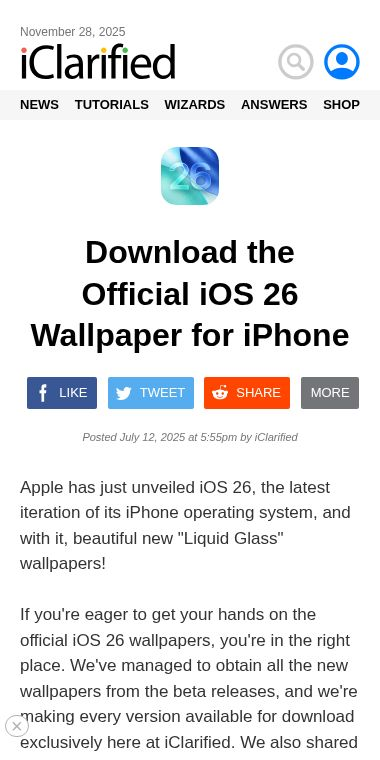 This specific page lets you download the official wallpaper from iOS 26 directly to your iPhone. You get a clean, high-quality image to freshen up your home screen with the latest Apple design.
