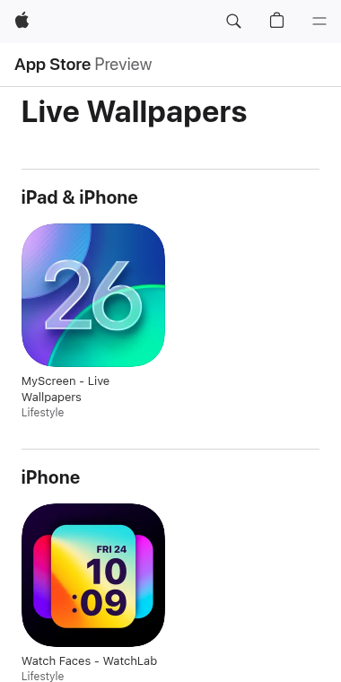 This is the official spot on the App Store to check out all the cool apps made by the developer "Live Wallpapers." If you're looking to personalize your phone's look with dynamic backgrounds, you've come to the right place.