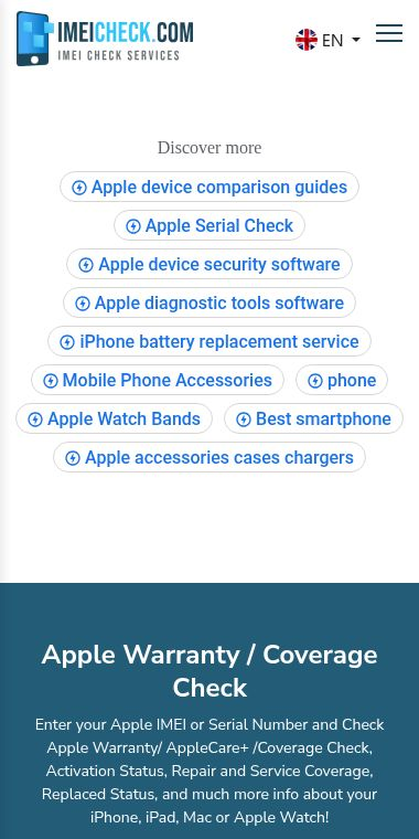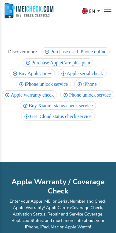 APPLE WARRANTY / COVERAGE CHECK | IMEICHECK.COM