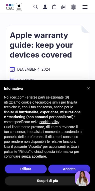 C&C é IL TUO APPLE PREMIUM PARTNER. SCOPRI I NOSTRI STORE, LE SOLUZIONI B2B, EDU O ACQUISTA ONLINE for iPhone warranty status at cec.com