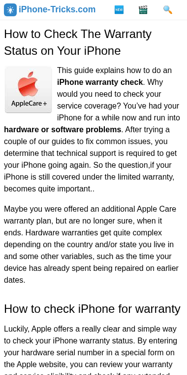 THIS GUIDE SHOWS YOU HOW TO CHECK THE WARRANTY STATUS OF AN APPLE DEVICE, IF YOU WANT TO KNOW, WHETHER IT IS IS COVERED UNDER APPLE'S LIMITED WARRANTY? for iPhone warranty status at iphone-tricks.com